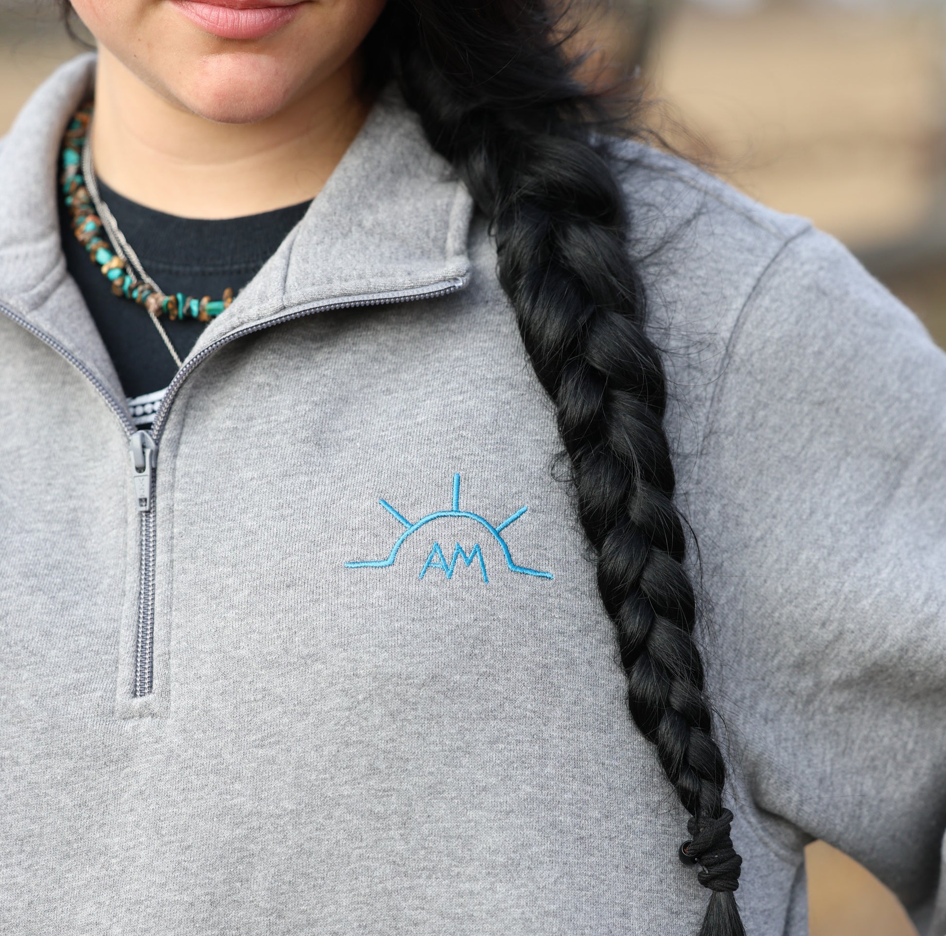 Shining AM Embroidered Quarter Zip. Heather grey quarter zip pull over.